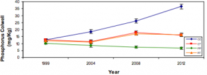 An interesting point to make is that the organic carbon within pasture system increased at a higher rate than the decrease in available phosphorous, which is largely inorganic. This means that phosphorous must have been provided from other sources. The only other alternative would be that soil organic carbon and plant available phosphorous were relatively independent of one another.