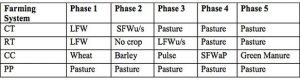 The CT represents a mixed farming system that uses conventional tillage with a pasture phase and grazing.