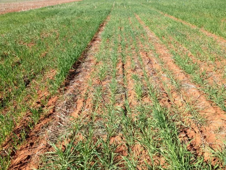 Reduced tillage including livestock (mixed farming) system – This system grew all wheat crops on long fallow. The rotation was long fallow wheat (LFW), skip a year (stubble maintained, weeds controlled by grazing and a chemical application in August), long fallow wheat undersown (LFWu/s) with a lucerne/clover/medic-based pasture, then two years grazed pasture.