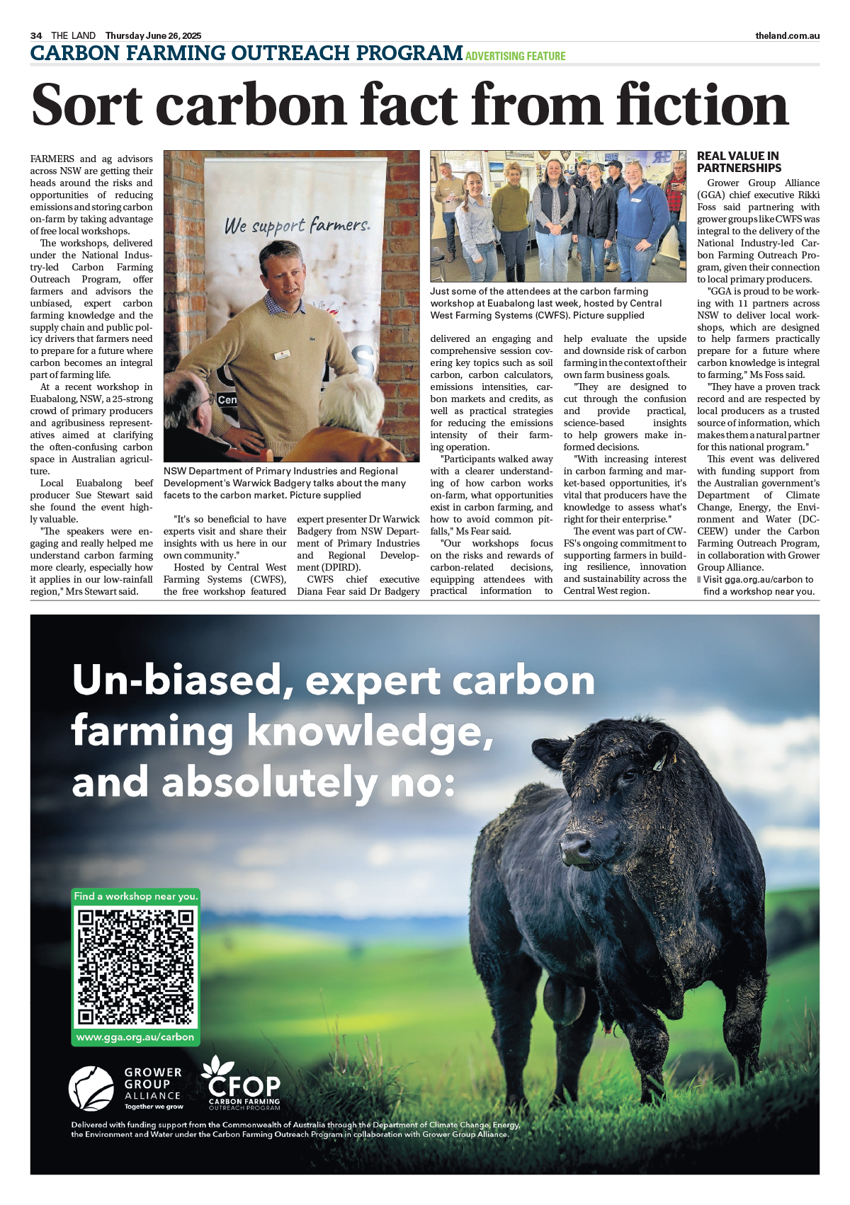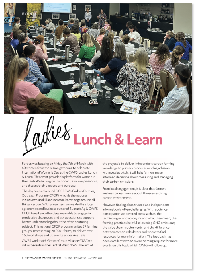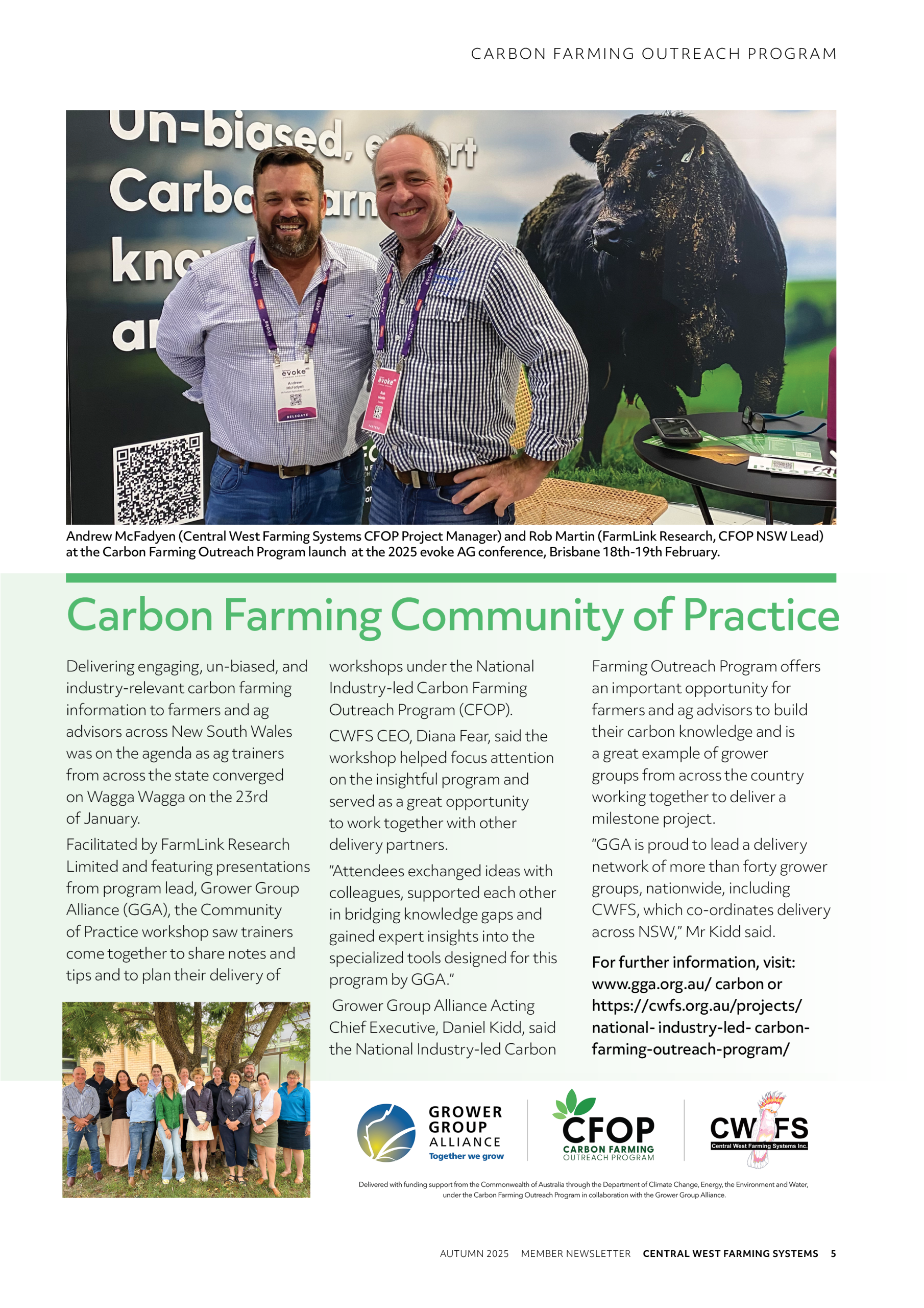 CWFS to facilitate three workshops with industry experts on carbon farming and low-emissions technologies and practices.
