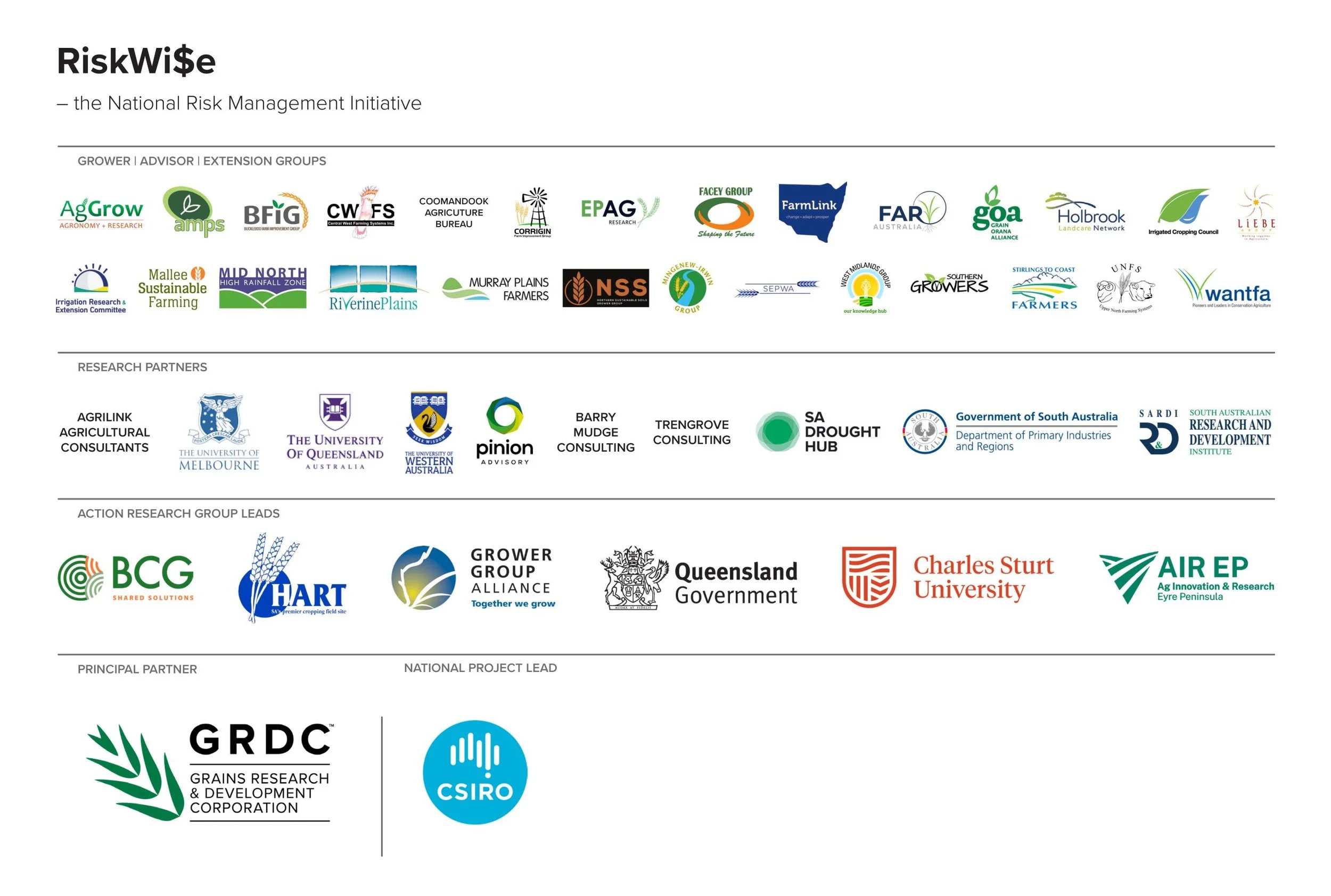 RiskWi$e is made possible thanks to the involvement of all partners and was established through an investment of the Grains Research and Development Corporation (GRDC). RiskWi$e partners include: